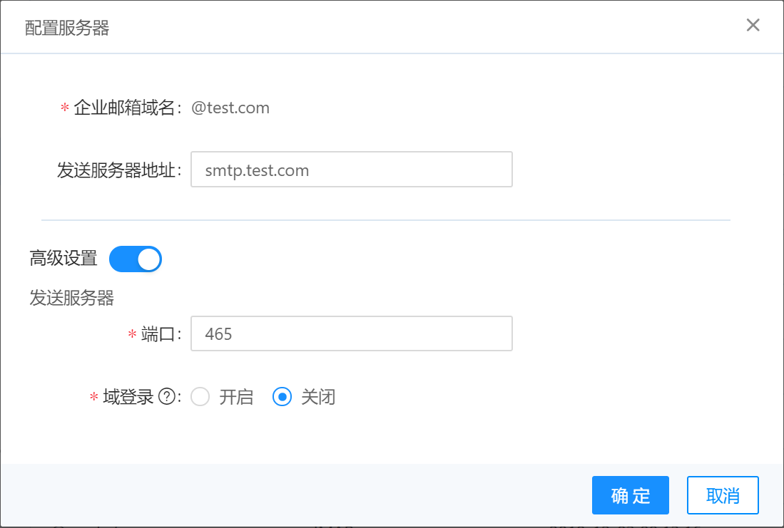 注意:如果邮箱的登陆名不是邮箱地址,需要勾选“域登陆”,此时会使用用户管理中的“员工ID”作为邮箱的登陆名。